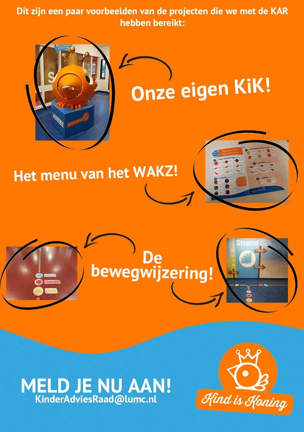 De KinderAdviesRaad heeft de afgelopen jaren hard gewerkt aan verschillende projecten. We zijn trots op wat we met elkaar hebben bereikt. Heb je vragen en ideeën voor de KinderAdviesRaad, of wil je zelf in de KinderAdviesRaad? Stuur dan een mail naar: KinderAdviesRaad@lumc.nl.