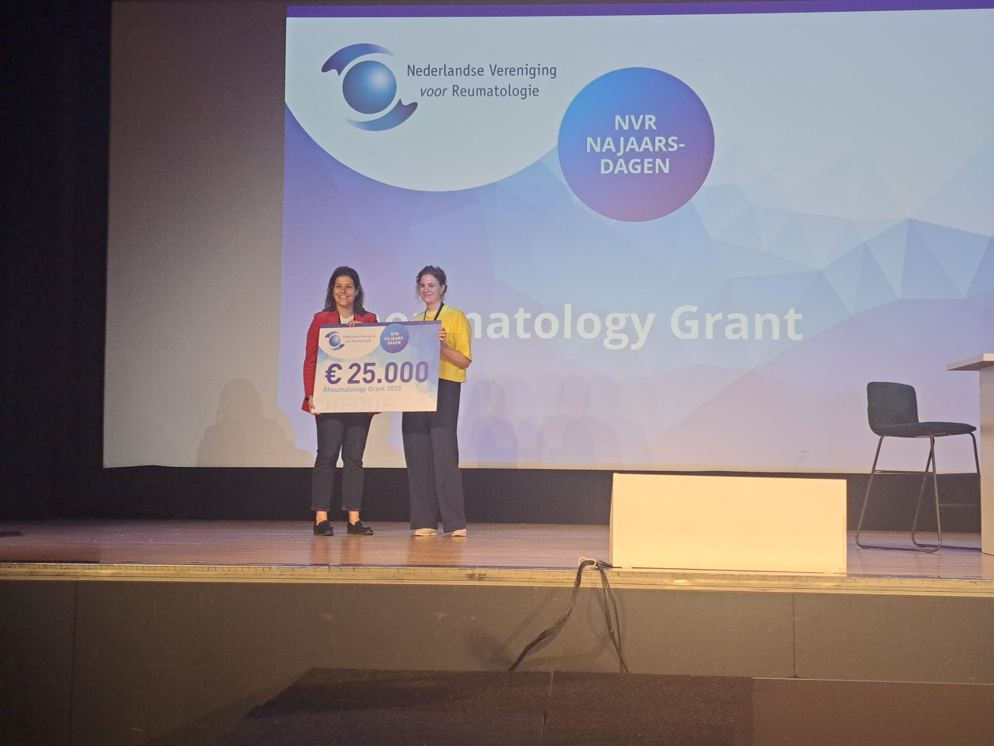 Op 26 september mocht Elise van Mulligen tijdens de jaarlijkse Reumatologiedagen de Rheumatology Grant 2025 in ontvangst nemen. Met deze beurs gaat zij onderzoek doen naar de kostenbesparingen en kosteneffectiviteit van de Leidse Early Arthritis Recognition Clinic. Van Mulligen promoveerde aan het Erasmus MC en is momenteel postdoc in de onderzoeksgroep van prof. dr. Annette van der Helm – van Mil.