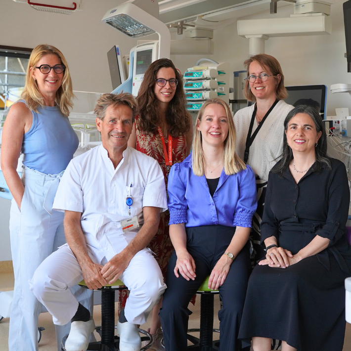 “We doen vooral intra-uteriene transfusies, waarbij we bloed geven aan het ongeboren kind. Dat kan dus nodig zijn als het kind bloedarmoede heeft. Bloedarmoede bij het ongeboren kind is soms levensbedreigend. Ook doen we veel laser-operaties bij het tweelingtransfusiesyndroom. Die aandoening kan voorkomen bij monochoriale tweelingzwangerschappen, waarbij een identieke tweeling een placenta deelt en de bloedstroom niet in evenwicht is. De foetussen kunnen daardoor ernstig ziek worden of veel te vroeg geboren worden met een slechte afloop.”