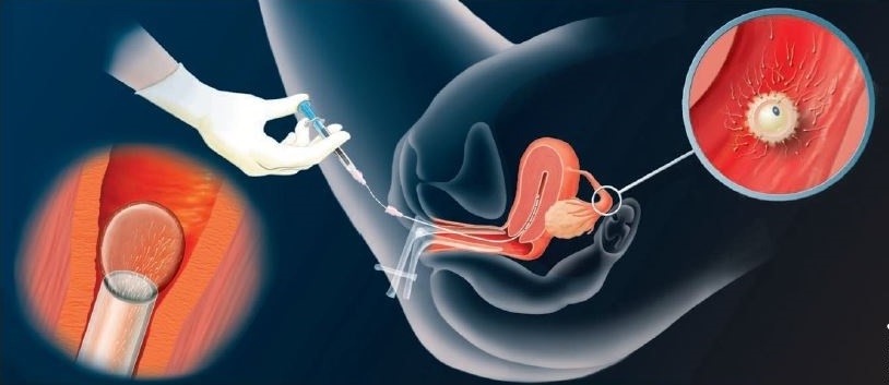 De inseminatie gebeurt op een onderzoeksstoel en gaat als een algemeen gynaecologisch onderzoek. Na het inbrengen van een speculum (eendenbek) wordt er een dunne katheter door de baarmoedermond in de baarmoederholte gebracht. Een volle blaas vergemakkelijkt over het algemeen de inseminatie en u wordt dan ook verzocht niet vlak voor een inseminatie uit te plassen. Het inbrengen van de katheter gaat doorgaans erg vlot en doet over het algemeen geen pijn. Vervolgens worden de zaadcellen in de baarmoederholte ingespoten. De katheter en eendenbek worden verwijderd en u mag direct weer opstaan.