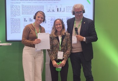 Andrea Vallés Martí heeft een prijs ontvangen voor haar posterpresentatie tijdens de Pancreatic cancer basic science sessie van de UEG week in Berlijn. Haar poster, “The closer, the better: intratumoral delivery of a thermoresponsive gemcitabine-loaded hydrogel in preclinical PDAC models” beschrijft de veelbelovende preklinische data van chemotherapie geladen hydrogel (chemogel), voor de lokale behandeling van alvleesklierkanker. Dit onderzoek is tot stand gekomen in nauwe samenwerking met OncoLize, een spin-off binnen het Leiden BioScience Park. Andrea werkt als postdoctorale onderzoeker binnen het onderzoekslaboratorium van de maag-darm-leverziekten in het LUMC.