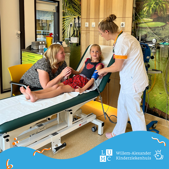 Een poliklinische afspraak bij de kindermaag-, darm- en leverarts in het Willem-Alexander Kinderziekenhuis gebeurt op de afdeling Stad. De doktersassistent meet en weegt het kind en soms moet er bloedonderzoek worden gedaan.